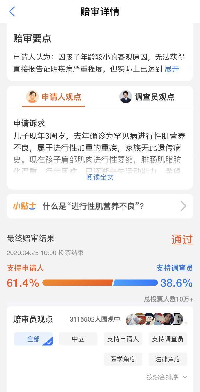 针对此次案件,支持通过的相互宝赔审员认为,申请人是由于客观原因导致无法提供证明材料,应考虑到申请人的实际情况。反对的赔审员认为,规则对于相互宝每位成员都是公平公正的,在有效证明不足的情况下,还是应遵守规则。