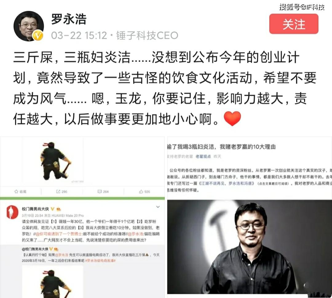 签约后罗永浩发文称“这是老罗输不起的最后一战了”;“做直播电商,意味着老罗压箱底的功夫都使出来了,年近半百的他是死是活,就在此一役了”;“如果没有意外,T2(坚果1/M1/坚果Pro1/坚果Pro2/R1/TNT/坚果Pro2S/小野)应该是老罗最后一次的机会了”。