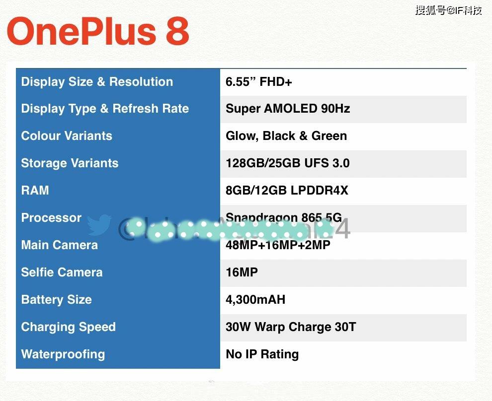 刚刚外媒公布一加8系列的基本硬件配置,全系搭载骁龙865芯片,标准版一加8的配置比较低一些,仍然是1080P分辨率,6.55英寸屏幕。今年新发布的旗舰机非常流行高刷新率,其实最先使用高刷新率的普通智能手机就来自一加,不过一加8并没有升级到120Hz,仍然是Super AMOLED 90Hz。