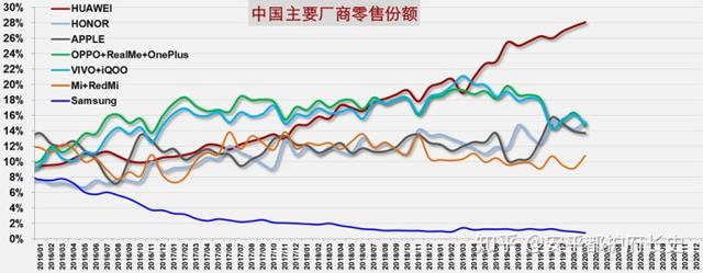 将这份数据和Counterpoint公司的研究数据相互印证,看来华为手机的二月份全球市场占有率确实是全球第三。