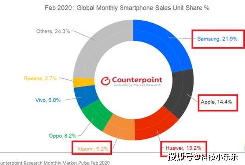 3月25日,知名市场数据研究公司Counterpoint,在官网正式发布了2020年2月份的全球智能手机市场调查研究报告。