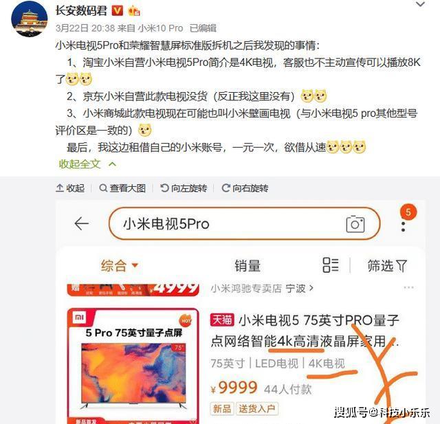 想必大家都知道,在昨天的时候,一位名叫@搞机鸭 的微博博主在网上进行了一场拆机直播,这场直播中@搞机鸭 所主要对比的对象是2999的荣耀智慧屏和9999的小米电视5pro,而这次直播的对比结果也是9999的小米电视5pro完全败给了2999的荣耀智慧屏,可以说是完全被荣耀智慧屏产品吊打。