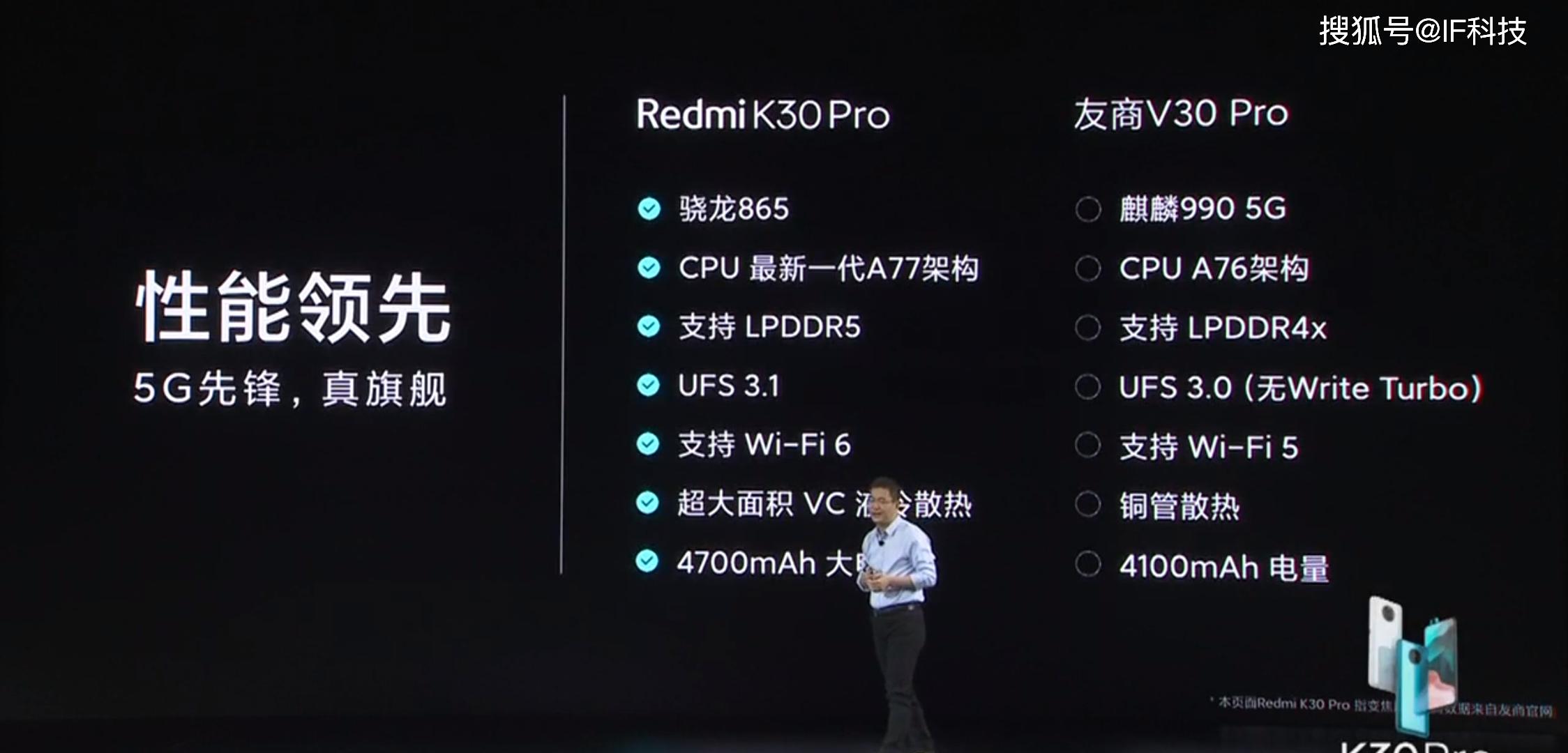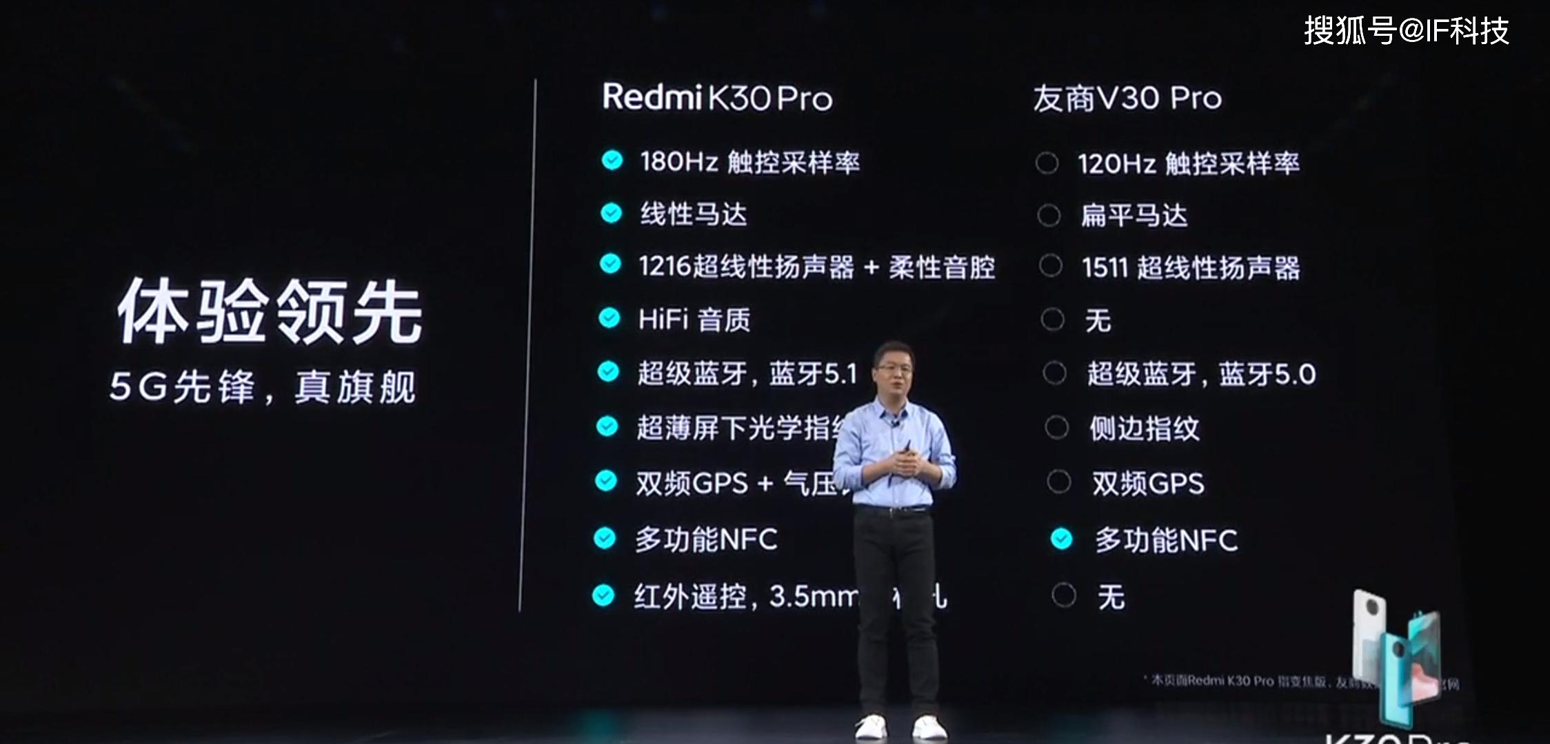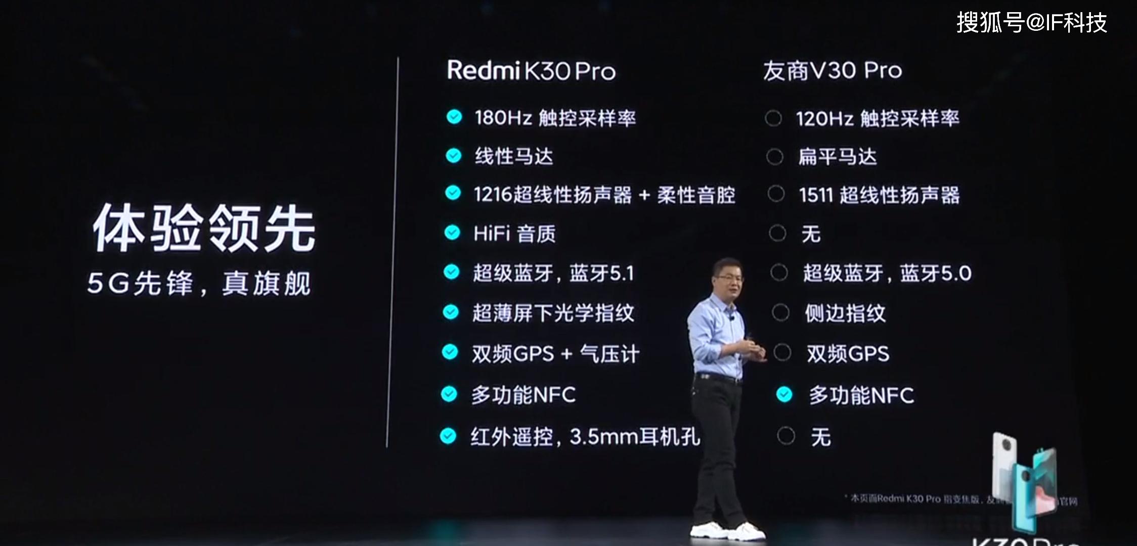 另外不论是电池容量还是充电速度,Redmi K30Pro都超越友商V30pro,卢伟冰在发布会上称360度无死角全面碾压友商V30pro。不过在Redmi K30Pro公布价格之前,还是有很多网友对60Hz刷新率不满意,当然他们也说如果定价2999元,那么眼睛可以自动补帧到144Hz。