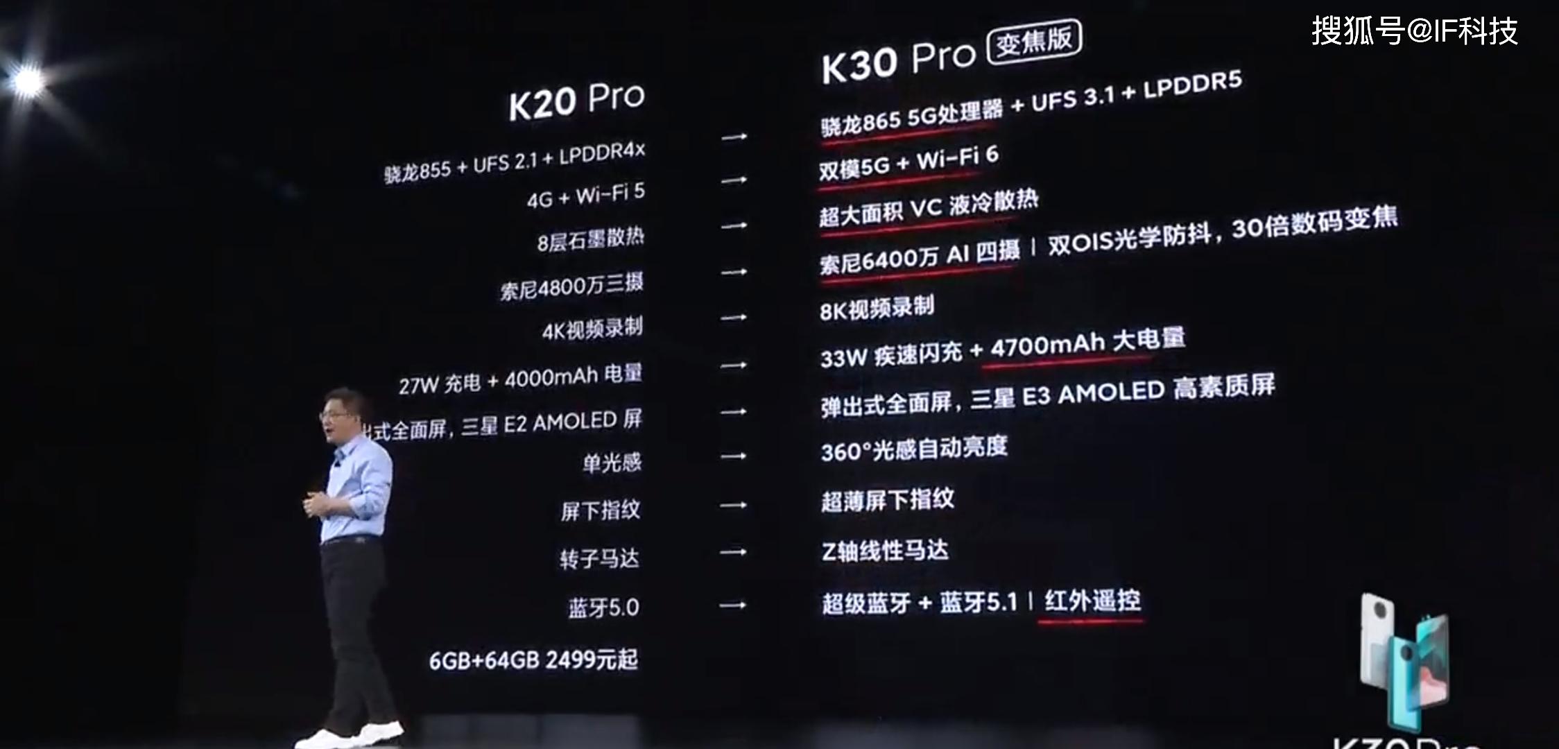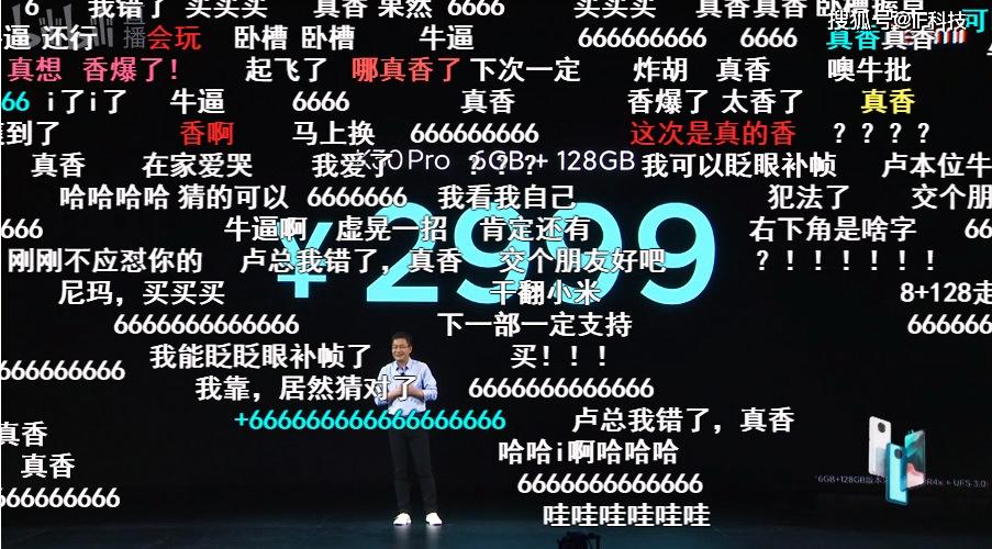 卢伟冰在发布会上公布Redmi K30Pro起售价为3299元之后,立刻掏出手机看直播弹幕,看看网友们是否满意,然而3299元并不是真正的起售价,最后2999元出现在PPT中再次震撼全场。