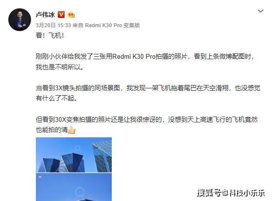 可实际结果是什么呢?宣传的标配LPDDR5+UFS3.1,6+128G的机型没有,只配备LPDDR4X+UFS3.0!宣传的标配双OIS光学防抖只有K30Pro变焦版才有,标准版没有!宣传的30倍变焦,仍然是只有K30Pro变焦版才有,标准版改配了长焦微距!而且这些差异,整场发布会卢伟冰只提了一个标准版改配长焦微距,其他的一概不提。只在屏幕下方很小很模糊的一行字,看着像:“6+128G的机型配备LPDDR4X+UFS3.0”。