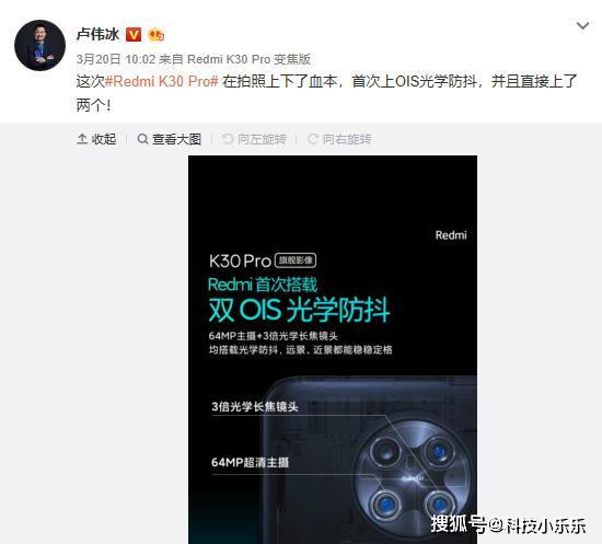 先说虚假宣传。众所周知,小米的每款产品发布会之前小米都要进行少则半个月多则一个月的预热,K30Pro的发布也不例外。在小米10系列发布之后,小米的一众高管就开始忙着给K30Pro做宣传。并且主要宣传点是:高通骁龙865+LPDDR5+UFS3.1以及双OIS光学防抖。