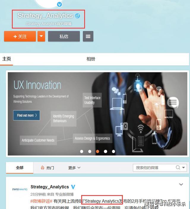 当然,口说无凭,凡事还是要以证据说话,从图片中我们可以看到,这是Strategy Analytics的官方微博,也就是@新浪手机 微博中所提到的那个市场调研机构的官方微博,从这个机构的官方微博上我们可以看到,他所发布的最后一条微博便是一条辟谣微博,告知大家网上流传的那张2月份手机销量排行榜是谣言,请大家停止转载!
