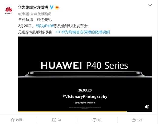 Huawei同时确认,此次活动将以线上的形式举办和呈现。此次P40系列的首发宣传语是“全时超清,时代先机”。
