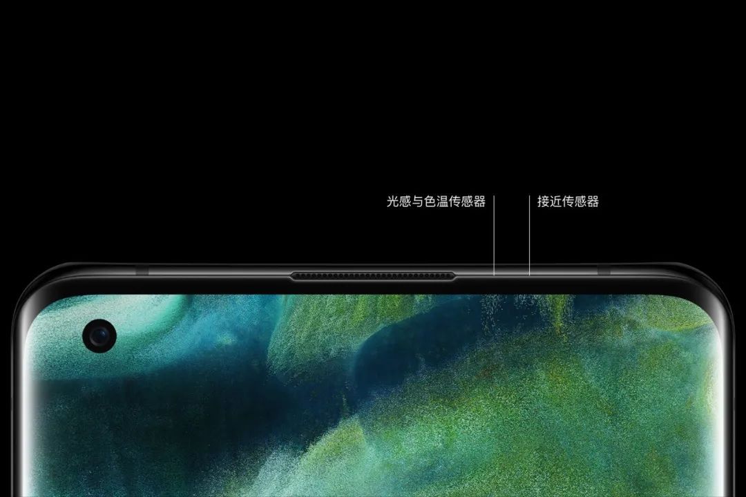 在形态上,左上角单挖孔OLED曲面屏,挖孔的直径从视觉上就感觉比Reno 3 Pro还小。边框区域很窄,情理之中的是COP封装,其2.98mm的下边框,是OPPO迄今最窄的。值得注意的是,这块屏幕虽然是曲面,但曲率没有达到瀑布屏的那种夸张程度,之前我们从谍照上推测其弧度在70°左右,现在准确的参数是67.8°。