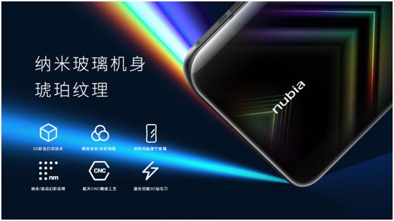 努比亚Play的摄像头采用了菱形的几何设计符号,标识性十足又与机身整体的设计语言相呼应;机身背部则采用了强韧而细腻的纳米玻璃材料,并以3D彩色打印技术巧妙地呈现了琥珀纹理般惊艳的观感,用户使用过程中配合自然光影流转在机身上的效果,美轮美奂且极富个性。细节上,努比亚Play以极具品牌特色的红黑元素作为点缀,突出了未来感与科技感。