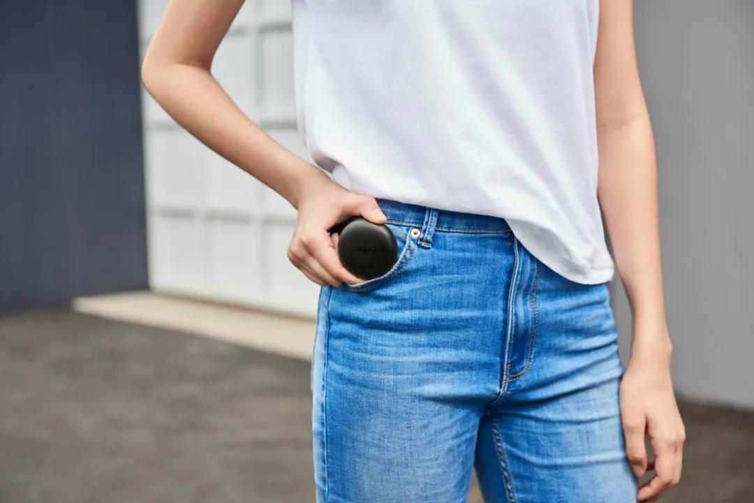 它拥有“敢自黑”“被表白”“真爱粉”三种配色,听这个名字是不是感觉有一点调皮的感觉?是的,它的颜色命名也的确来自于网络词汇,非常新潮有个性。而我们拿到的是一款“敢自黑”,比较耐脏,但是容易沾染指纹。可以看到它仅有手掌中心一块大小,内部采用磁吸式设计,耳机放入其中会牢牢吸附住。同时,充电盒还采用了与大部分手机相同的Type-C充电接口,免去了单独配备充电线的烦恼。