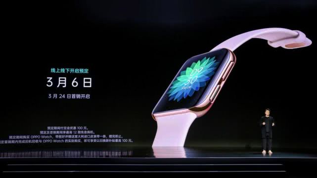 自3月6日起,线上线下同步开启预定,3月24日首销。预定期间付定金优惠100元,并可享最高12期免息分期,预定成功购买OPPO Watch,各大电商带图评价还可额外获赠送一条意大利进口小牛皮表带一条,送完即止。