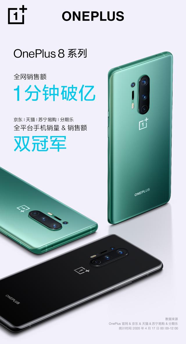 刚刚一加官方公布了今天一加8系列的销售成绩:一分钟破亿,这也相当于2万+的一加8顶配或者1万7千台一加8 Pro,成绩相当可以