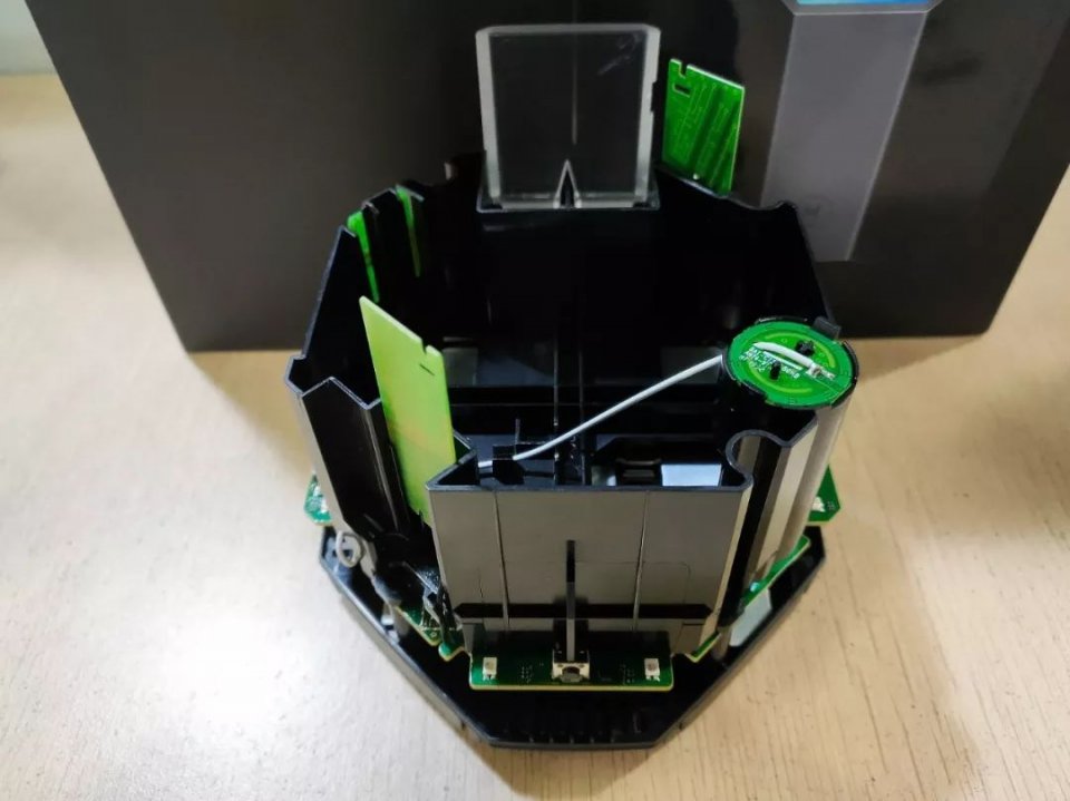 荣耀猎人游戏路由优秀的综合表现的确让我爱不释手,但是作为一个从小就喜欢“拆家”的熊孩子,我还是忍不住想要把它拆开看看。拆解这款路由器比较简单,拧出底部防滑垫下的4颗螺丝,再小心地翘起底部的外壳,就能看到这款路由器的内部结构。荣耀猎人游戏路由配备了一对双极化天线作为5GHz游戏信道的专属天线,并且4根天线呈“X”形布局,全向覆盖手机各种方向信号,能更好的与各类手机适配并对接。