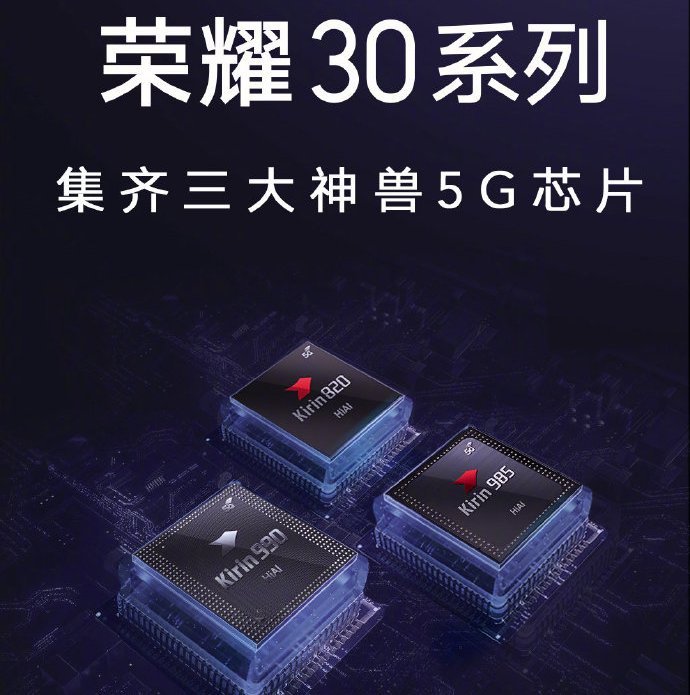 1.荣耀30系列首发麒麟985芯片