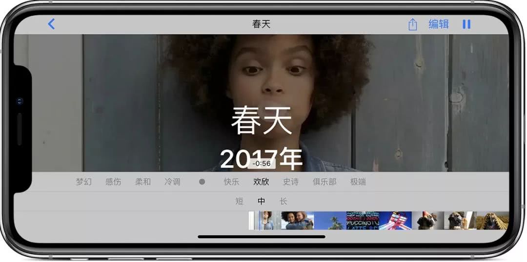 关于iPhone相簿的“回忆”功能,其实就是选自图库中的最佳照片和视频,自动生成一段带有回忆色彩的小视频,并配上音效,令整个影片更加丰富多彩。