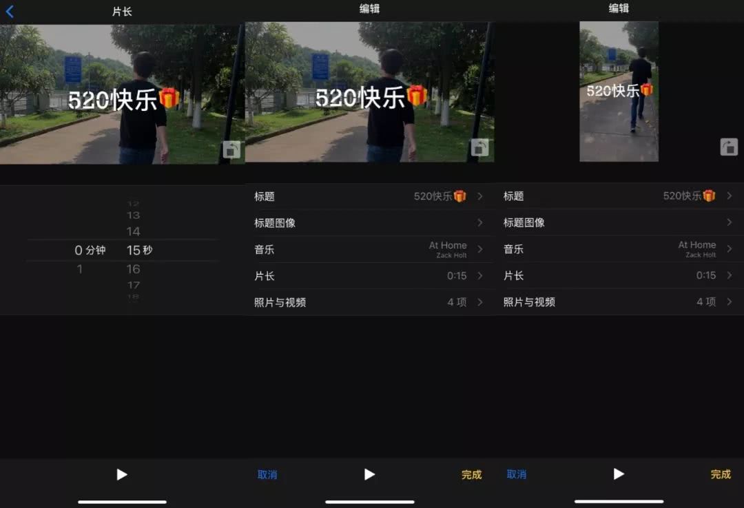 当然,这是懒人的做法,也可以自己动手选取某个场景的某张照片,替换更改。同时还能调整标题、封面、滤镜、时长、音乐,使之成为自己喜欢的风格。