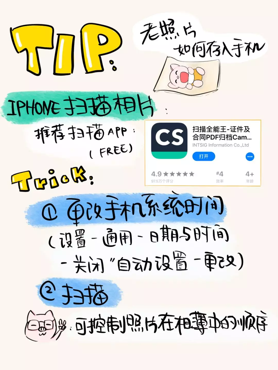 第三步:下载免费APP“扫描全能王”,可将原来的老照片存入手机。
