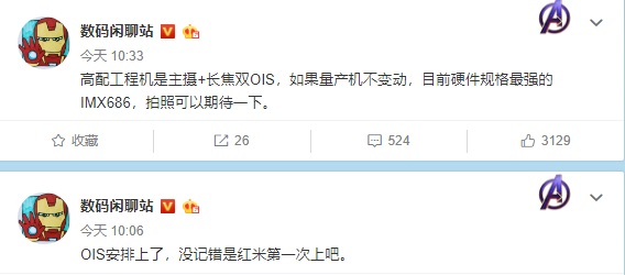 近日,有数码博主曝光了有关Redmi K30 Pro摄像模组的相关信息,爆料称Redmi K30 Pro支持OIS光学防抖。