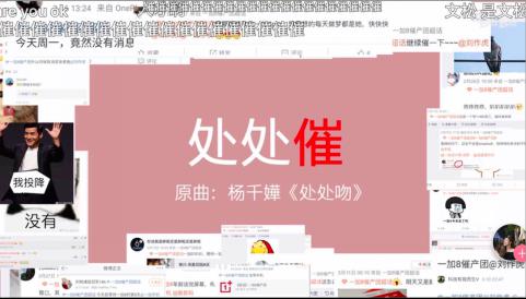 新品发售之前,从3月中旬开始,微博超话就突现“一加 8 催产团”,他们制作了大量关于刘作虎个人的催产表情包,以及催产视频《处处催》。