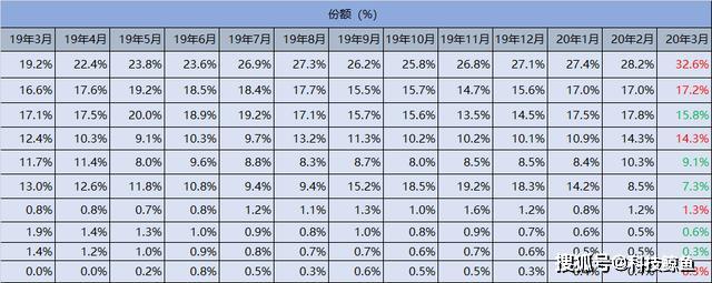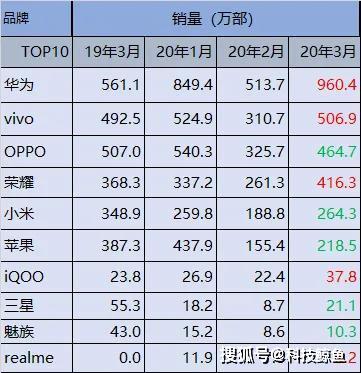 身为在逆境之中市场表现依然非常稳定的两个手机品牌,那么华为和vivo的销量表现究竟有多亮眼呢?从上面的手机品牌销量表中不难看出,虽然华为和vivo的手机销量都曾在2月份受到了严峻形势的冲击,但是凭借着出色的应对策略,华为与vivo均在3月份实现了强势反弹,相比去年的三月实现了同期增长。从下表中的数据来看,二者的市场占比分别达到了32.5%和17.2%,绝对是手机市场中的两股重要力量。