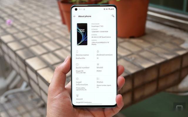 一加8的屏幕尺寸是6.55寸,色准和峰值亮度都在线,分辨率成了2400*1080,没有高刷新率?没有标注我就当它没有,不过尺寸轻薄度应该不错。