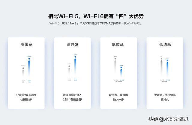 首先要说的是现在宽带的速度都起来了,更高的网速当然需要搭配更好的了路由器,虽然现在WIFI6的路由器还是有些小贵的,但是WIFI6的规格是进步了非常多的,最高将允许与多达8个设备通信,最高速率可达9.6Gbps!