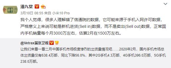不过,小米产业投资部合伙人潘九堂认为,该报告可能源于手机入网许可数据,是新机进货数据,估算2月应该出货1500万左右。也就是说,其实这是代理商进货的数据,而不是用户实际购买的数量。不过,一般来说,调研机构数据采集会出于同一标准,并不会出现今年A数据对比去年B数据的低级错误。