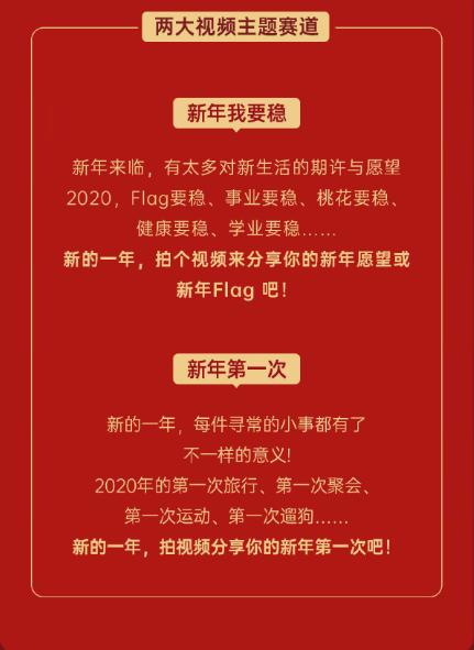 活动分为两大赛道:“新年我要稳“和”新年第一次“,参加的方式很简单,用户只要拍下视频进入相应的赛道即可,内容可以是旅行、可以是跑步、可以是萌宠……许愿的方向可以是事业、爱情、学业、健康……总之你能拍的出来的都行。除了自己发视频也可以给喜欢的博主视频助力打call。