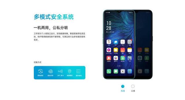 OPPO A11n是OPPO推出的第三款专为企业用户打造的机型,其针对企业用户对于信息安全的需求, 通过“个人域”和“工作域”不同使用场景的精细划分,以及TF卡加密芯片等形式,能够实现用户身份认证、保密通话、数据加密传输等功能,实现数据隔离,保护敏感信息。
