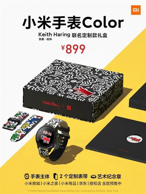 此外,小米手表Color Keith Haring联名版在包装方面也融入了Keith Haring的涂鸦元素。 而这款产品也在4月27日下午在小米商城、小米之家、小米有品、京东、小米授权店开启全款预约,在4月30日上午10点正式开售,定价则为899元。