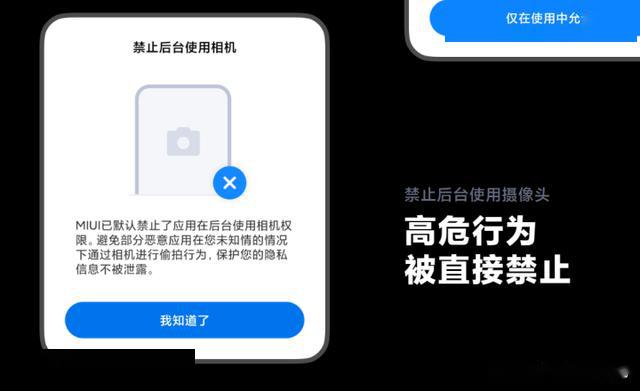 还有一个梗发生在升降摄像头手机刚推出的那年,QQ浏览器直接多次调用前置摄像头权限,你刷着新闻摄像头就莫名其妙升起来了,不知道的以为闹鬼呢,虽然后续TX解释说有升降动作但是不会拍摄,但是用户可不会这么想啊,这个时候MIU 12就直接避免这个问题了,后台应用程序直接不给你摄像头调用权限?