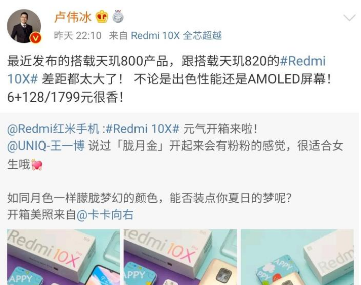 红米卢伟冰又来了一波提前“祝福”,他表示天玑800处理器性能太糟糕,完全不能和红米的天玑820处理器相比,小米这边将彻底抛弃天玑800不使用它。