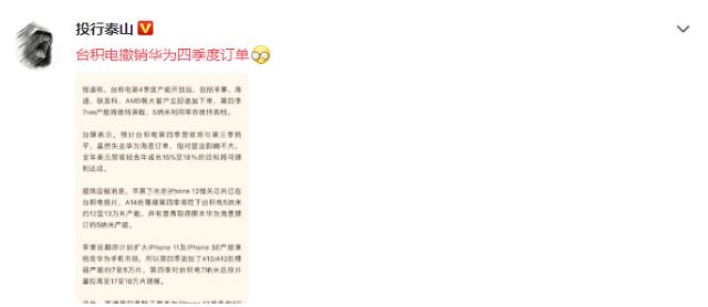 以台积电的产能,在笔者看来华为Mate 40系列旗舰如期发布不成问题,但对新品的现货供应能否坚持到2021年的下半年就不得而知。据外媒报道,台积电似乎已经确认在2020年的第四季度,全面撤销华为海思的芯片订单。