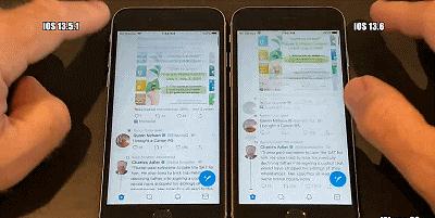 iOS13.6与iOS13.5.1同时打开天气、浏览器等系统软件的时候,通过放慢镜头可以看到iOS13.6稍微要更快一点。而且在运行第三方应用软件的时候,打开推特时候,iOS13.6的运行速度优势肉眼可见。