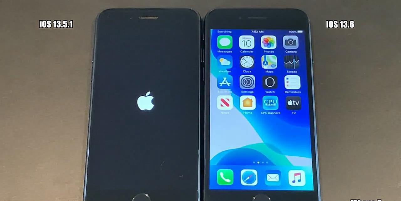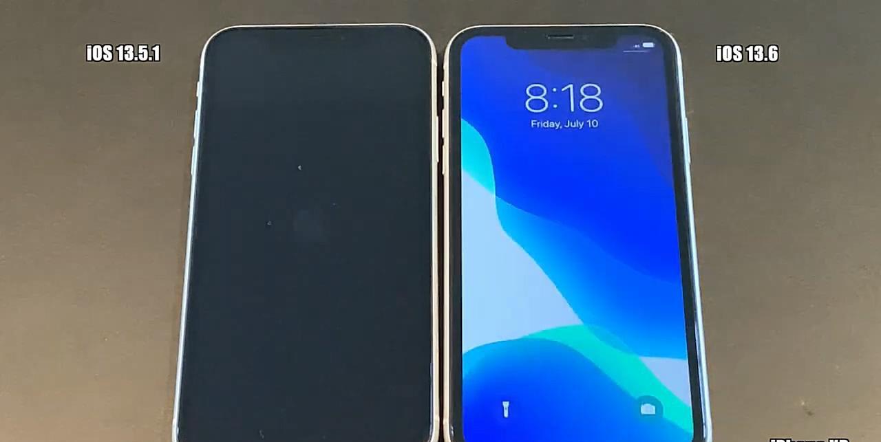 当这两台iPhoneSE同时启动后,可以看到iOS13.6速度相当快,开机仅仅耗时26秒。而iOS13.5.1则稍微落后1秒多,虽然差距不大,但可以明显感受到升级带来的速度提升。