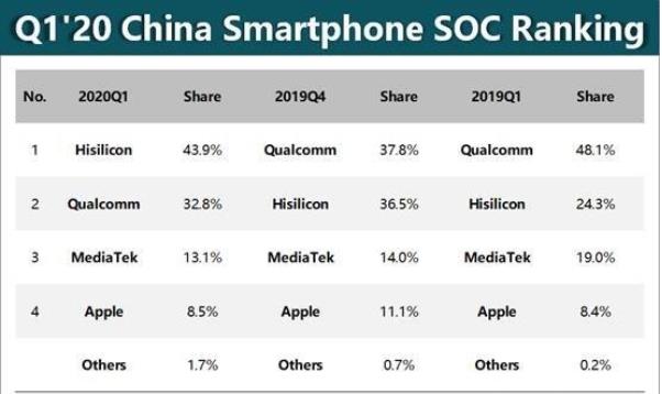 ,因为从今年第一季度的芯片市场份额情况来说,华为明显已经超越了高通,