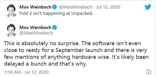 而对于许多人一直期待的下一代,也就是Galaxy Z Fold 2,最近就有外媒的爆料者Max Weinbach爆料称这款机型或许不会如期也就是在8月5号发布,而其中推迟发布的主要原因就是由于形态的创新,所以在部分的系统以及软件的适配工作上还没有完全准备好。