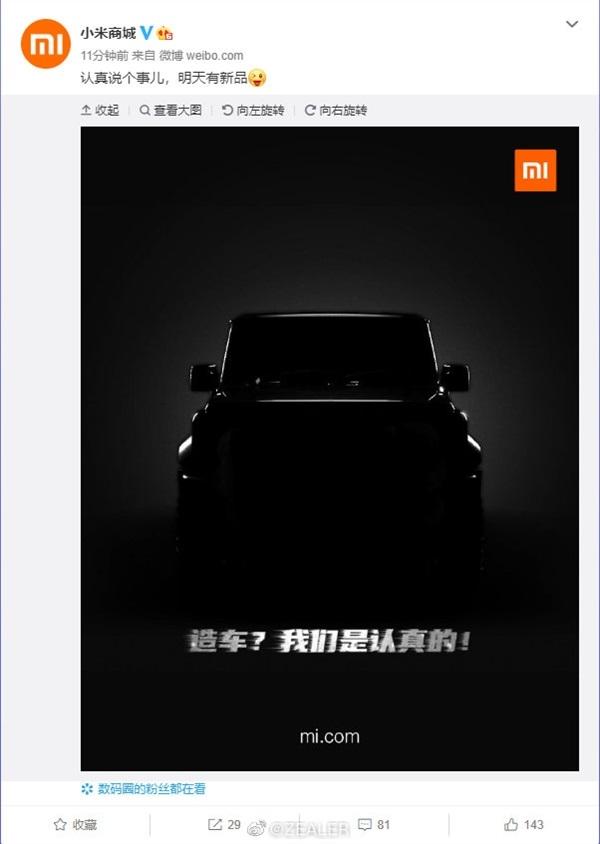 事情就是小米商城官方突然发文称:造车,我们是认真的!于是乎许多人看后直呼难不成小米要造车了吗?