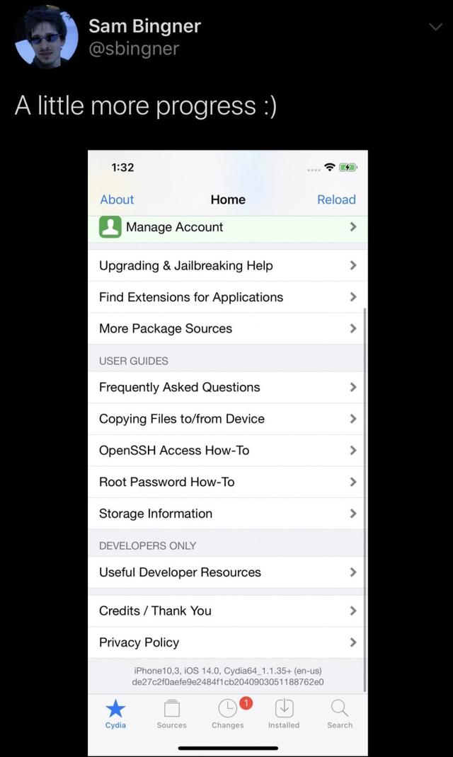 但是在最新的iOS 14发布没过多久之后,国外的开发者团队Dany Lisiansky就在国外社交媒体上公布了最新的iOS 14 checkra1n的详细粤语截图,可能在之后的不久就能够带来iOS 14的越狱了。