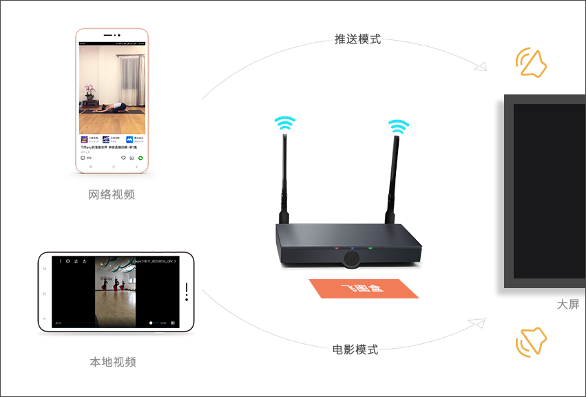 要把播放本地视频产生的声音传输给镜像接收端,飞图是通过电影模式实现。也就是把本地的视频文件,通过网络直接传输给接收端,并在接收端直接播放视频文件,从而声音和图像都不受影响,无损播放。