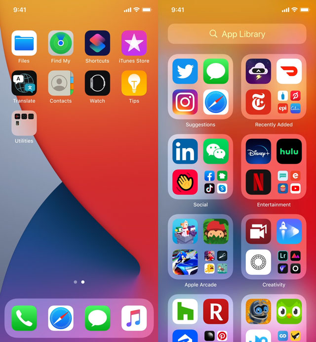 iOS 14增加了一个APP资源库功能,通过它可以方便的将桌面上的APP进行整理,比如通过字母A到Z进行排列(中文图标则是通过拼音排列),或者将同类的APP收集在一个文件夹当中,也可以隐藏平时用不到的APP。这个功能还是挺方便的,但是在安卓系统里并不少见,MIUI、EMUI等深度定制的安卓系统都有类似的功能。