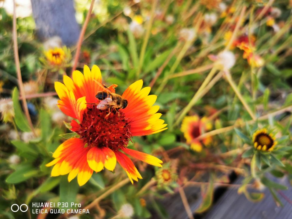 除了提供更宽阔的视野,华为P30 Pro还能拍下更精致的细节。图中,蜜蜂停留在仅有的一朵仍盛开的花上,华为P30 Pro超级微距清晰拍摄下蜜蜂的翅膀、容貌,花朵的花瓣纹理和花蕊蕊丝,记录下微小的美好场景,精致得仿佛工艺品,吸引人仔细观赏。