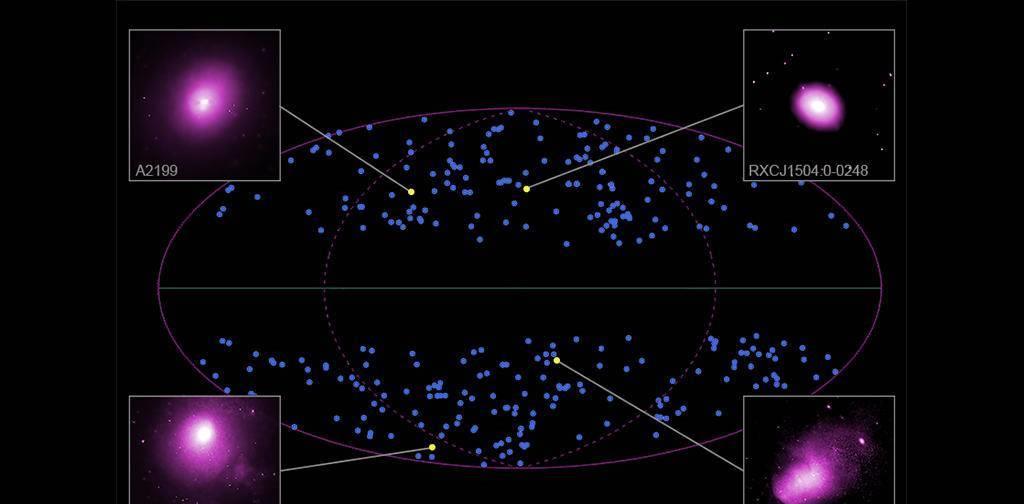 该研究的数据来源于大量X射线望远镜的观测结果,其中包括伦琴卫星,XMM-牛顿卫星(原名多镜片X射线观测卫星),钱德拉X射线天文望远镜,他们共计观测了散布于天空中的313个银河系星系团。在对观测结果进行分析的时候,他们发现宇宙膨胀速度在不同方向上存在细微的差别。简单的说,想象银河系像一个不断膨胀的表盘,十二点和六点的膨胀速度快于预期,而同时三点和九点的膨胀速度要慢于预期。尽管从一个具有各向同性(又称均匀性)的宇宙来看,每个区域上的差异并没有那么大,但总体来看,这种差异不太可能仅仅是由于偶然因素造成的。