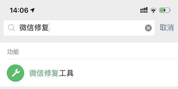 在微信主界面点右上角的搜索图标,搜索“微信修复”就能看到【微信修复工具】的图标显示在下方,进入后选择“修复聊天记录”选项即可。