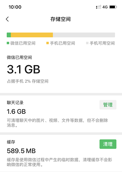 这种方法就是打开微信设置,或者是我们手机里的设置,在微信里面是点击【通用】-【存储空间】然后点击清理;手机里是点击【设置】-【应用】-【微信】然后点击清理缓存,其实这两种方法清理的手机聊天记录都不完全,都是可以恢复的,所以我们看看其他操作。