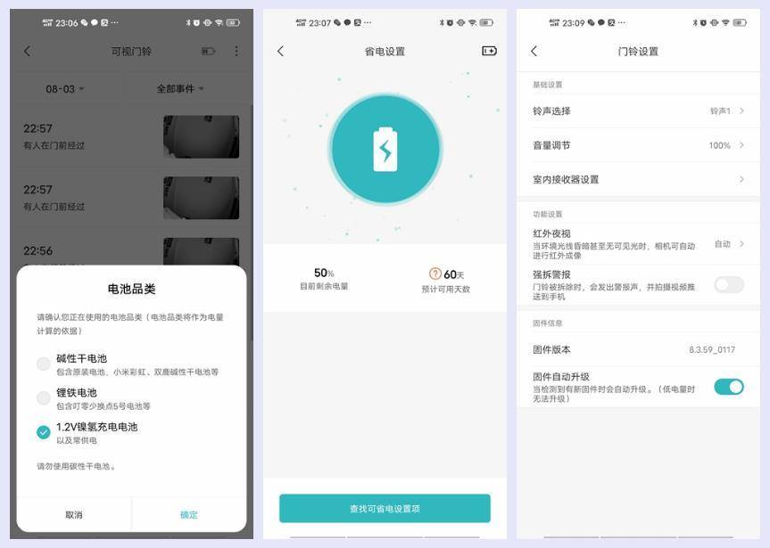 为了能提高续航能力,叮零智能可视门铃C5可以兼容多种5号电池,因此在米家APP中给出了三个电池匹配选项,强档的选择可以发挥电池的最大效能,这三种电池分别是碱性干电池、锂铁电池和1.2V镍氢充电电池。