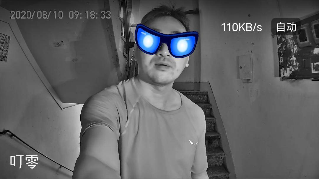 彩色与黑白之间的切换有轻微的咔哒声,这是镜头内部红外滤光片的摆动声音,也代红外LED补光功能已开启,发出的光线可以笼罩3米范围,光线均匀,整个画面没有明显光斑,人物轮廓非常清晰。