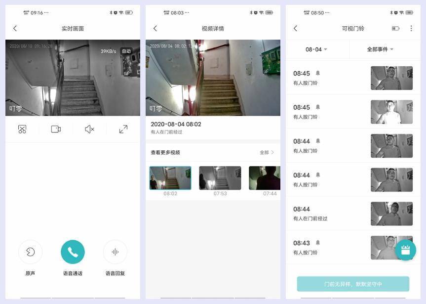 相比那些本地存储或收费云存储方式,叮零智能可视门铃C5的优势还体现在厂家赠送的3天云存储。这个时长对于家用是足够的,不用担心丢失损坏,比本地存储或NAS存储更可靠,远程可随时读取下载,而且记录信息详实,包括来访者的到访时间、停留时间等等信息都可快速查询。具有理想的可靠性。