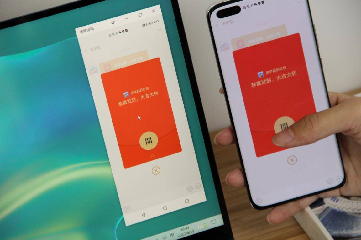 值得一提的是,这项功能还有许多小妙用,比如用PC屏幕操控手机微信抢红包。相信大家都遇见过工作中群里突然发红包的情况,在过去面对这种情况,我们还需要打开手机再打开微信抢红包,这样很难抢到红包。但是现在我们手机和PC完成多屏协同连接后,就可以在PC屏幕里的手机窗口通过微信抢红包,再也不会错过红包了。
